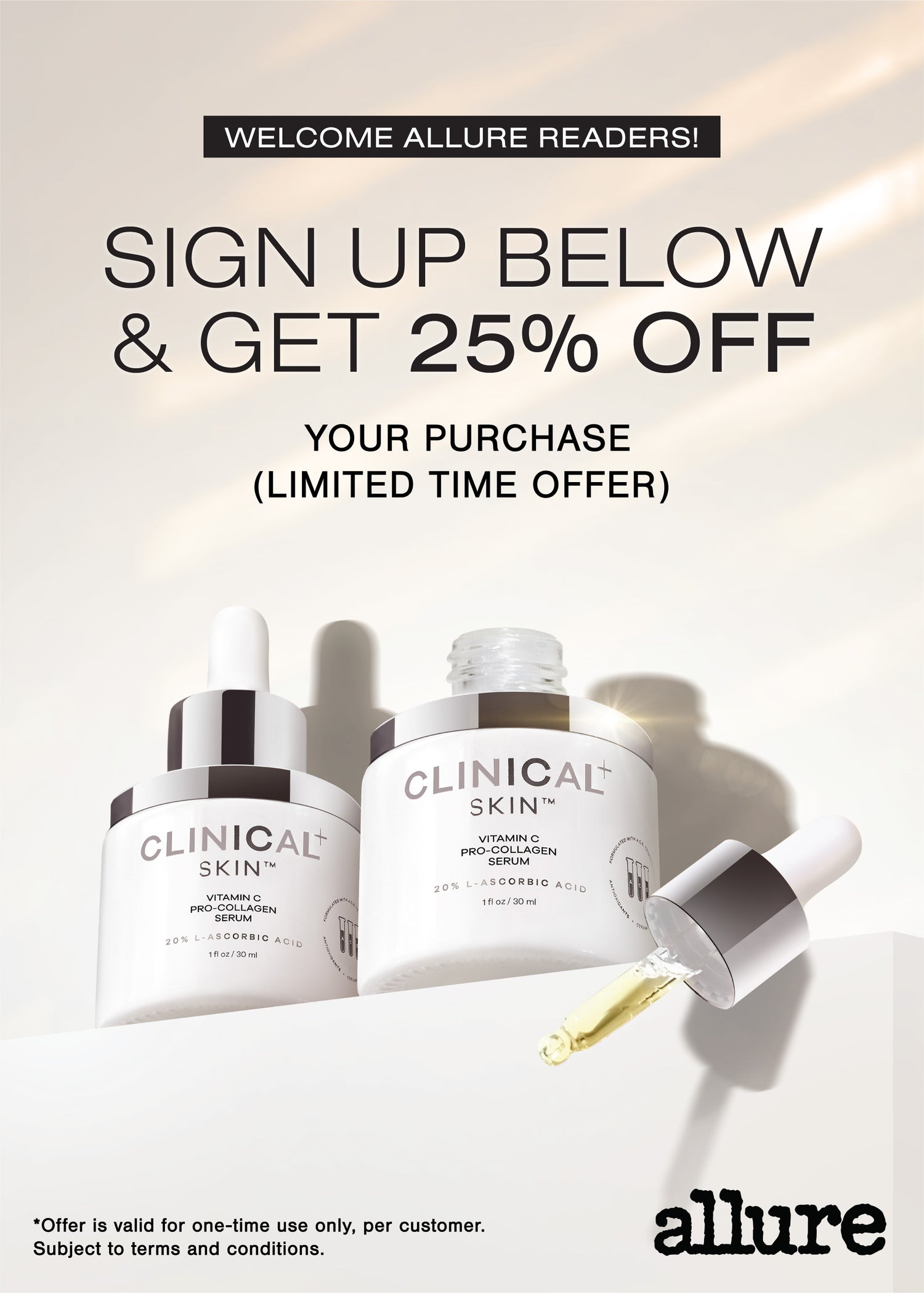 Vitamin C Pro-Collagen Serum is clinically proven* to show statistically significant improvements in the appearance of skin radiance, luminosity, global fine lines, wrinkles, and more.